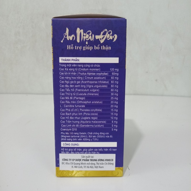 Giảm tiểu đêm, tiểu nhiều lần, bổ thận, giảm đau lưng mỏi gối do thận hư, AN NIỆU ĐÊM hỗ trợ cho người có chức năng thận suy giảm ( lọ 50 viên)