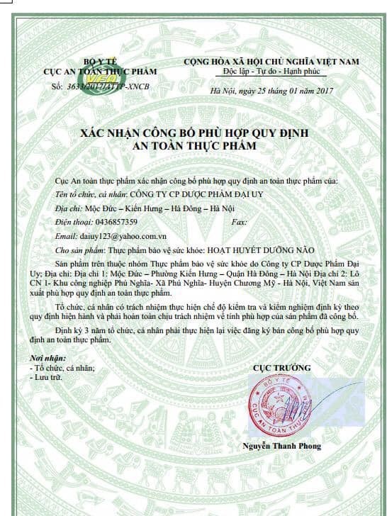 2. Công dụng Hoạt Huyết Dưỡng Não Dai Uy Pharma