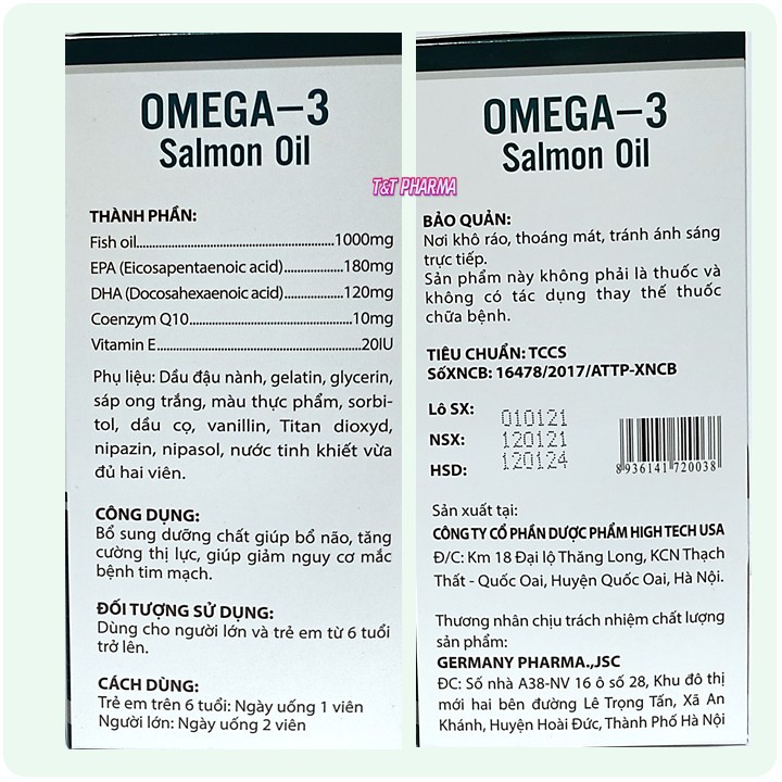 - Dầu cá 1000mg, EPA 180mg, DHA 120mg
