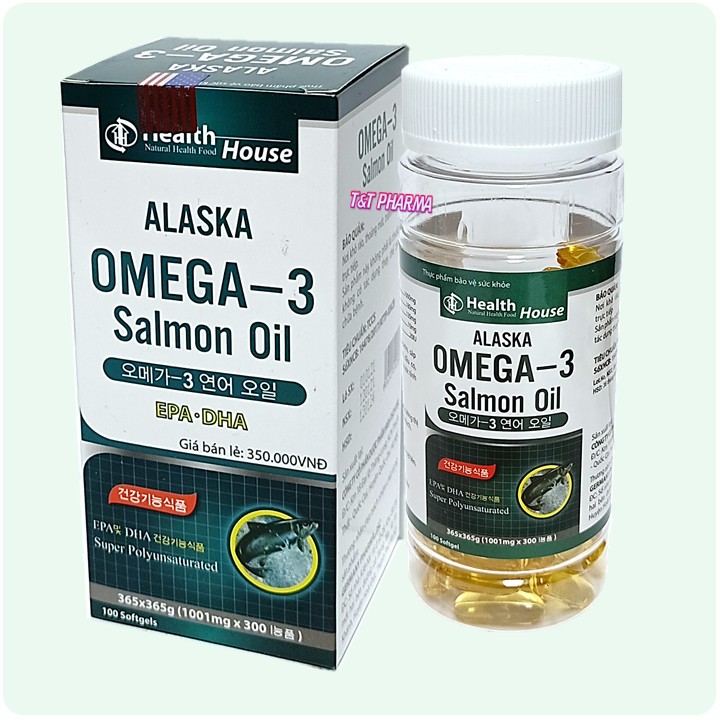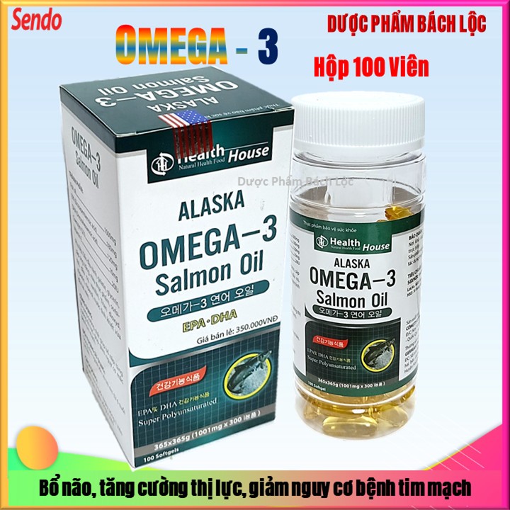 Viên dầu cá Alaska O.me.ga 3 Salmon Oil bổ não, sáng mắt, khỏe mạnh tim mạch, tăng cường trí nhớ - Hộp 100 viên thành phần dầu cá 1000mg, EPA 180mg, DHA 120mg