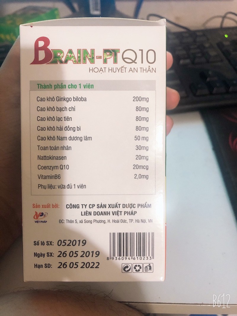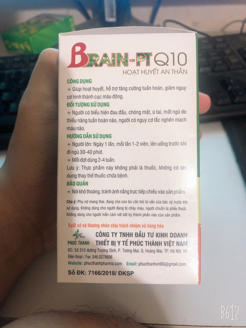 Viên Uống Hoạt Huyết An Thần Brain PT Q10-Hoạt huyết, bổ não, tăng cường lưu thông máu lên não,hoa mắt, chóng mặt, nhức đầu, đau nửa đầu, mệt mỏi, rối loạn tiền đình,