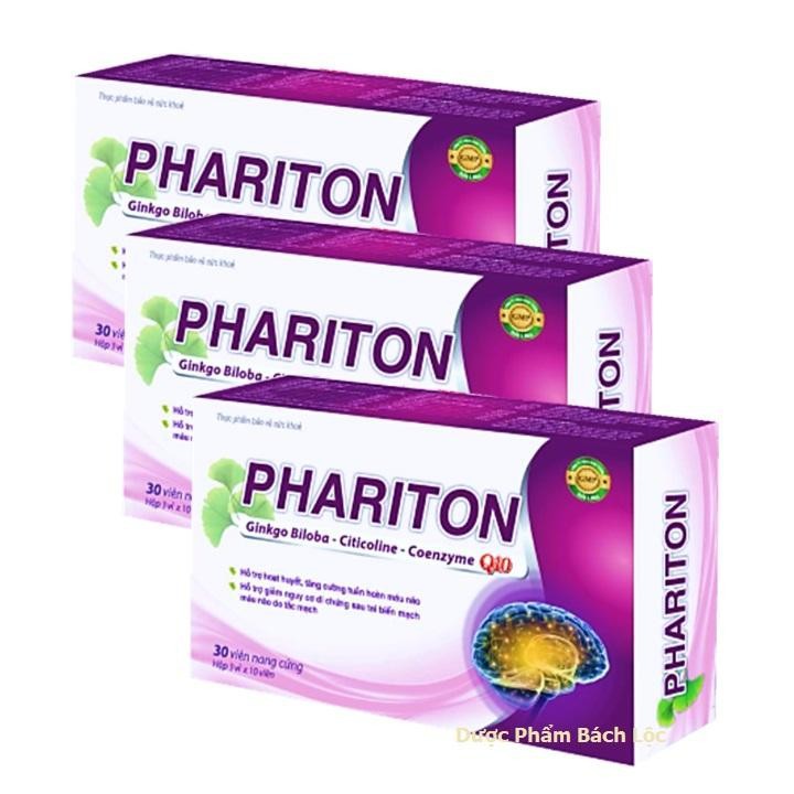 Viên Uống Bổ Não Phariton,Ginkgo Biloba,Citicoline,Coezyme Q10 sản xuất tại nhà máy chuẩn GMP Bộ Y Tế, Hộp 30 viên, ngày dùng 1 đến 2 viên.