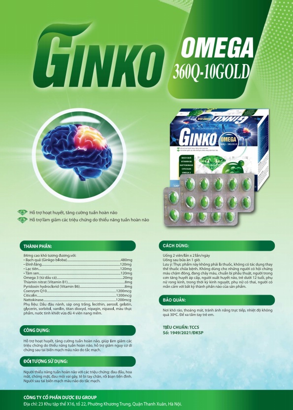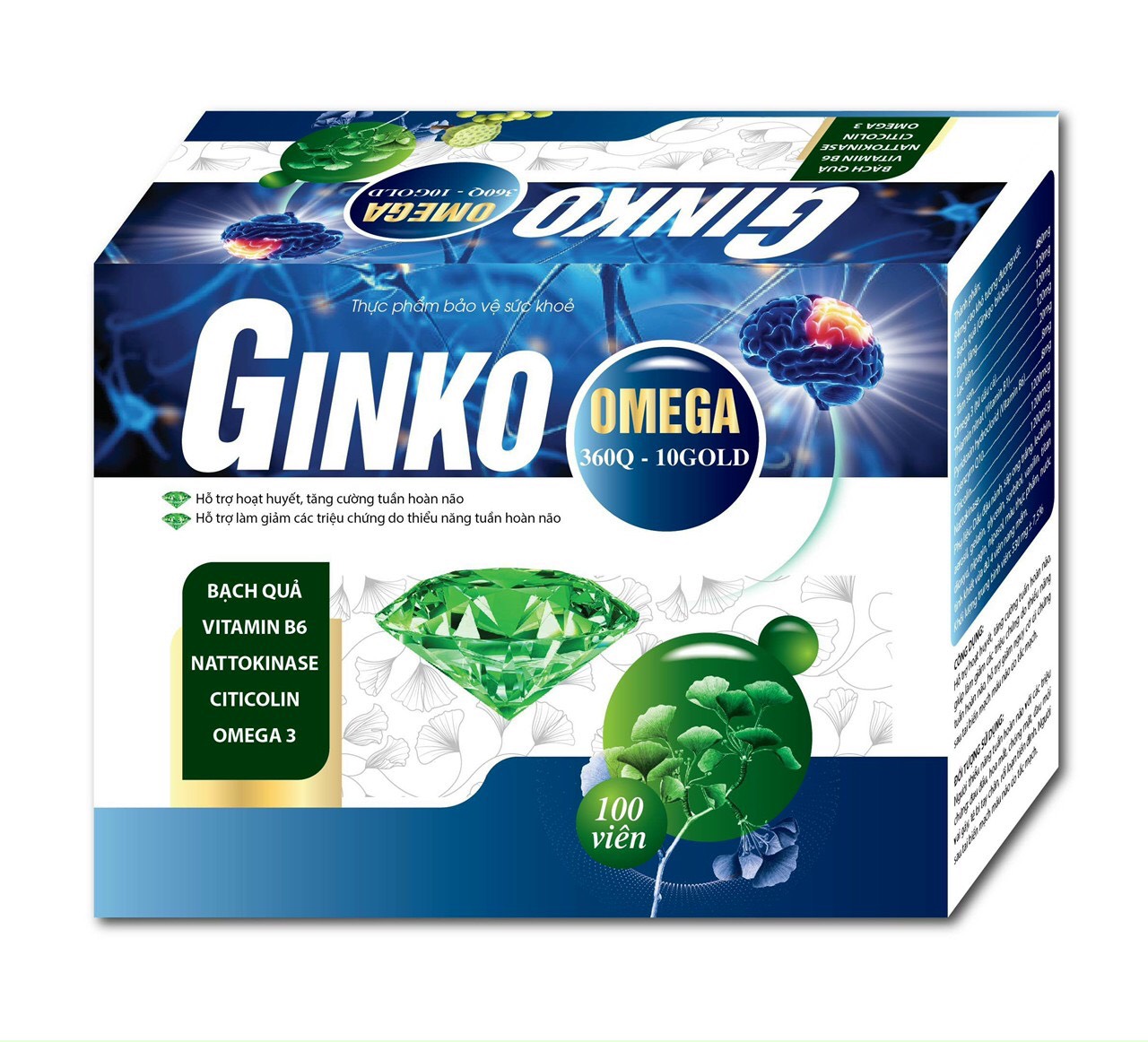 VIÊN UỐNG BỔ NÃO GINKO 360Q -10GOLD - HỖ TRỢ TĂNG CƯỜNG TUẦN HOÀN MÁU NÃO, HỖ TRỢ GIẢM NGUY CƠ TAI BIẾN -HỘP100 VIÊN
