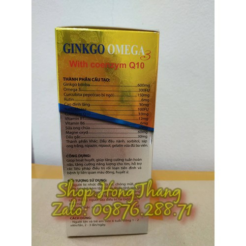 ginkgo omega-3 hoạt huyết dưỡng não hộp 100 viên