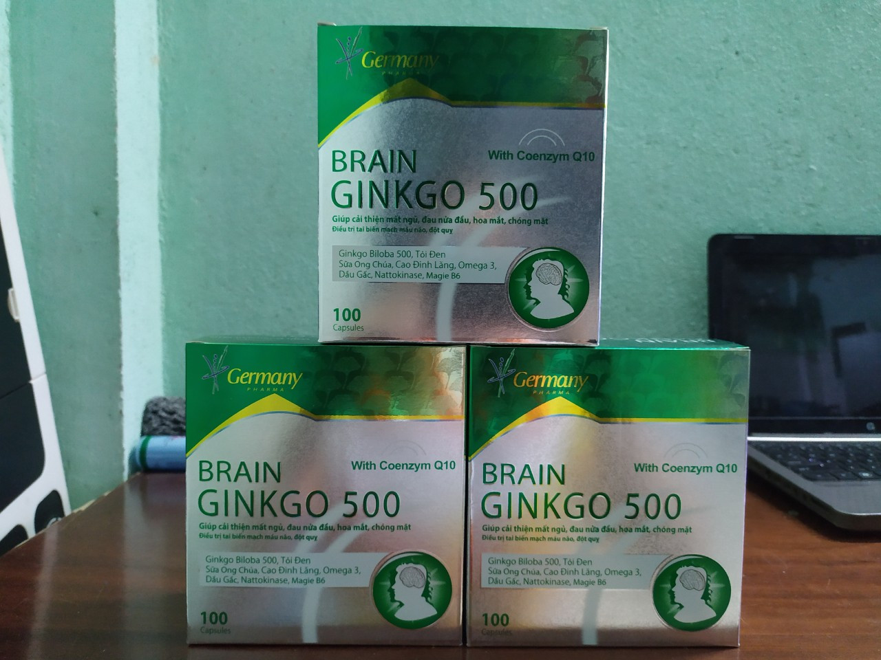 Thành phầnGinkgo Biloba 500mg, Cao đinh lăng 100mg, Coenzym Q10 5mg, mega 3 100mg, Magie oxyd 20mg, Vitamin B6 3mg, Sữa ong chúa 10mg, Dầu gấc 10, tỏi đen 30mg, Nattokinase 300FU, Vitamin B1 3mgCông dụngGiúp hoạt huyết, tăng cường lưu thông máu, giúp làm giảm các triệu chứng do thiểu năng tuần hoàn não. Đau đầu, đau nữa đầu, mất ngủ, hoa mắt, chóng mặt, tê bì chân tay, mất tập trung, suy giảm trí nhớ, người bị hội chứng tiền đình. Giúp giảm nguy cơ và làm tan cục máu đông.Hộp 100 viên nang mềm#ginkgobiloba#ginkgo#ginkgo500