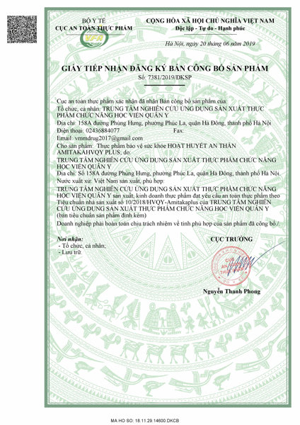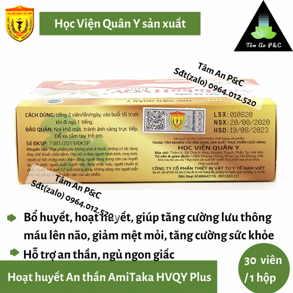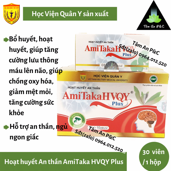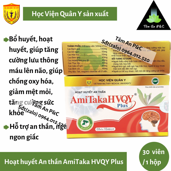 [ Ngủ Ngon, Bổ Não ] Hoạt Huyết An Thần Amitaka Plus sản xuất bởi Học Viện Quân Y Hộp 30 viên