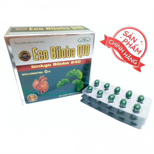 VIên uống bổ não EcoBiloba Q10 - Giúp tăng cường lưu thông máu não, hỗ trợ giảm di chứng sau tai biến mạch máu não- Hộp 100 viên
