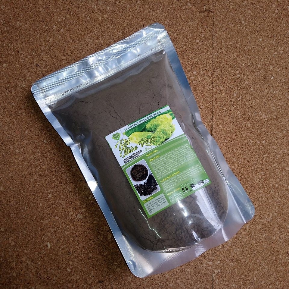 Thành phần: 100% bột nhàu rừng. Công dụng: Theo các nhà nghiên cứu khoa học quả nhàu rừng mang lại rất nhiều dưỡng chất quý, tốt cho sức khỏe, có tác dụng làm chậm quá trình lão hóa, ngăn cản suy giảm trí nhớ, hỗ trợ hoạt động tiêu hóa. Đặc biệt Phòng chống ung thư, lupus, viêm gan, chống viêm, tăng cường miễn dịch, giảm huyết áp,phòng chống bệnh tiểu đường, xương khớp. Kháng khuẩn ức chế các ký sinh trùng amip, ký sinh trùng sốt rét, làm lành vết thương, kích thích sản xuất collagen, tăng cường bài tiết mật, giải độc gan, chống dị ứng, chống trầm cảm, chống rối loạn tâm thần ở phụ nữ mãn kinh giúp ăn ngon, ngủ sâu giấc,… Hướng dẫn sử dụng: Uống từ 1 – 2 lần/ngày vào buổi sáng và tối. Pha từ 1 - 2 thìa cà phê bột với nước ấm, thêm mật ong hoặc không thêm tùy theo sở thích. Ngoài ra có thể ngâm bột với mật ong hoặc đường phèn để uống hàng ngày. Riêng với người có bao tử yếu thì nên uống sau khi ăn no. Bảo quản: Nơi khô ráo, thoáng mát, tránh ẩm, tránh ánh nắng chiếu trực tiếp vào sản phẩm và có nhiệt độ dưới 30 độ. HSD: 24 tháng từ ngày sx.