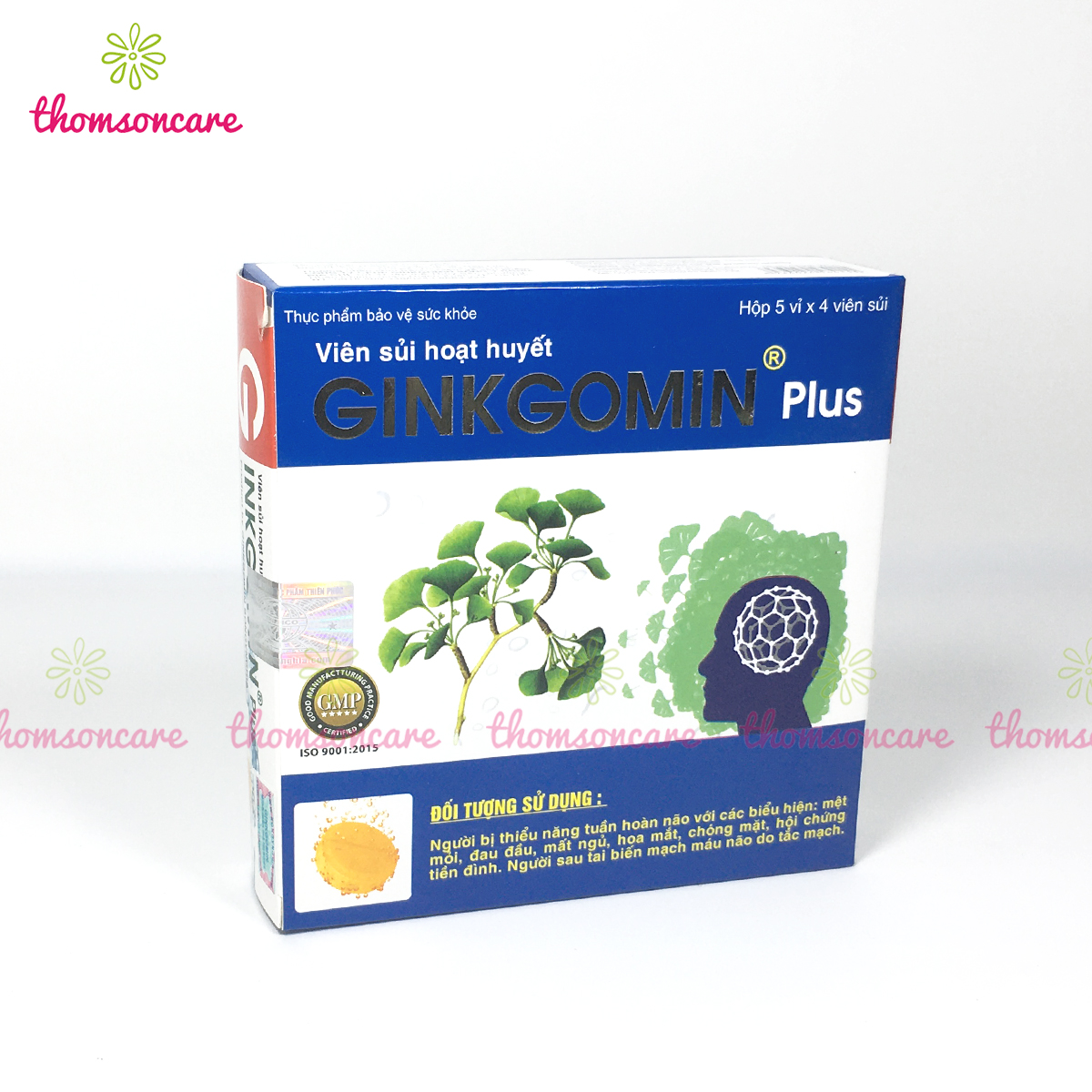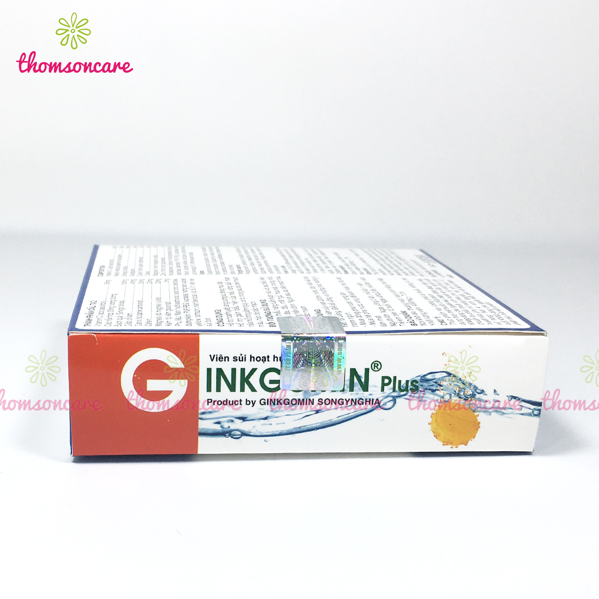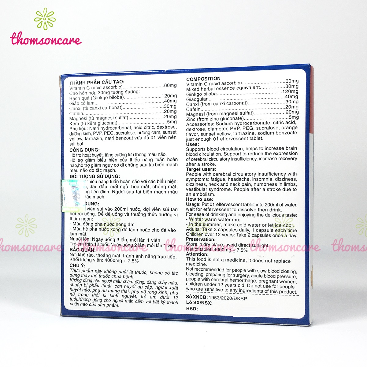 Hoạt huyết Ginkgomin plus dạng sủi tăng tuần hoàn não giảm đau đầu từ Ginkgo Biloba maige và giảo cổ lam hộp 20 viên