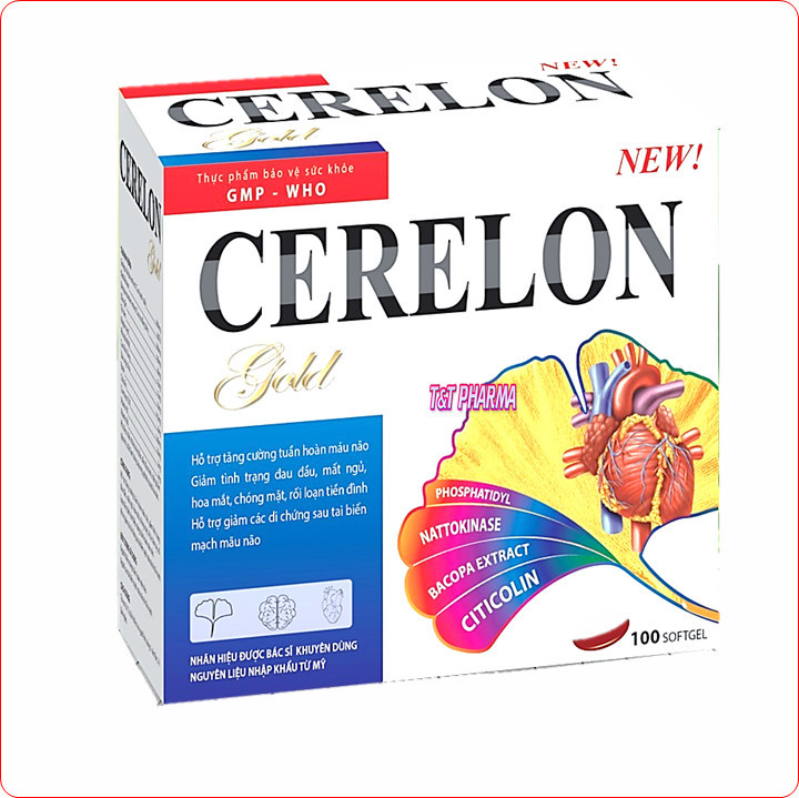 Hoạt huyết dưỡng não Cerelon Gold giảm đau nửa đầu, chóng mặt, mất ngủ - Hộp 100 viên