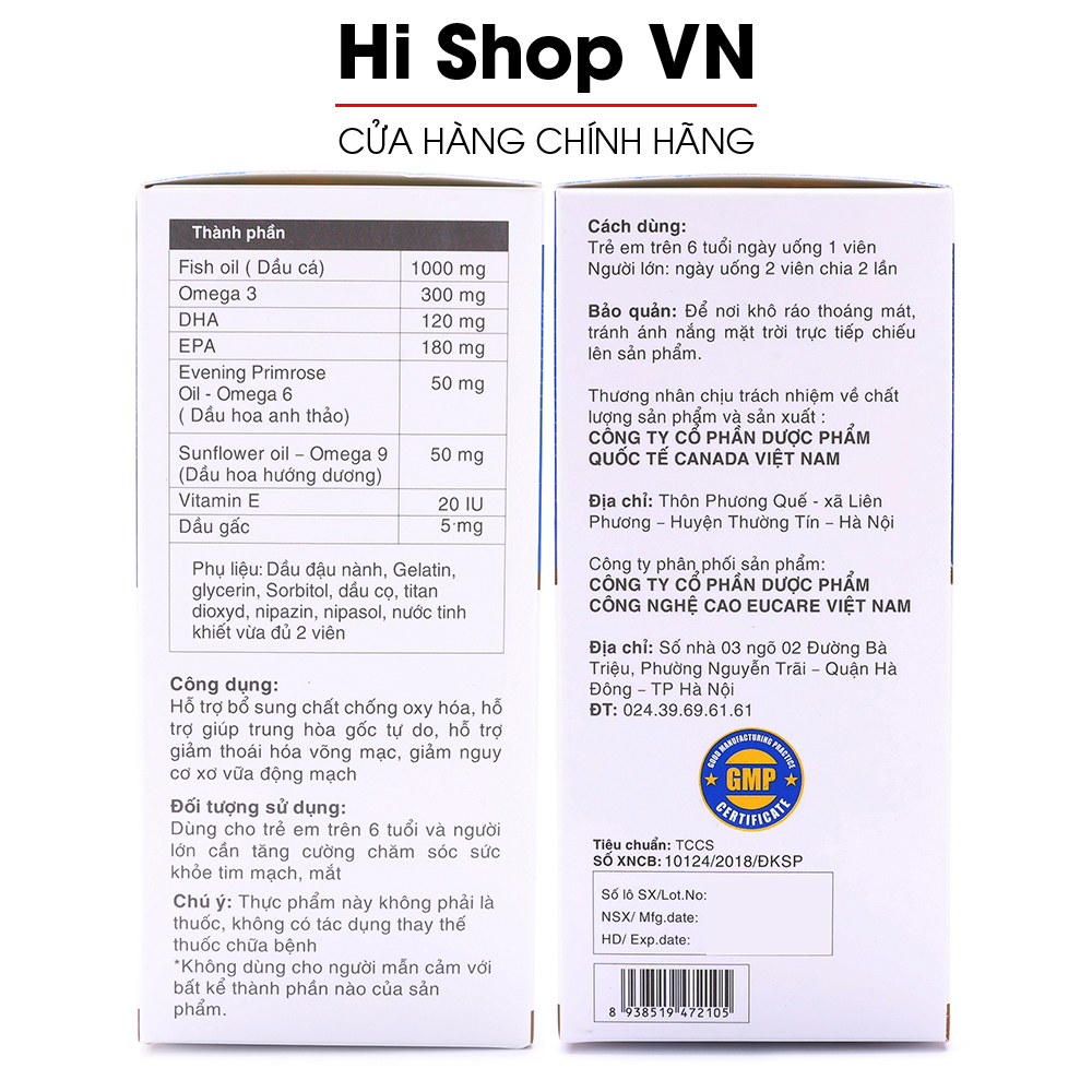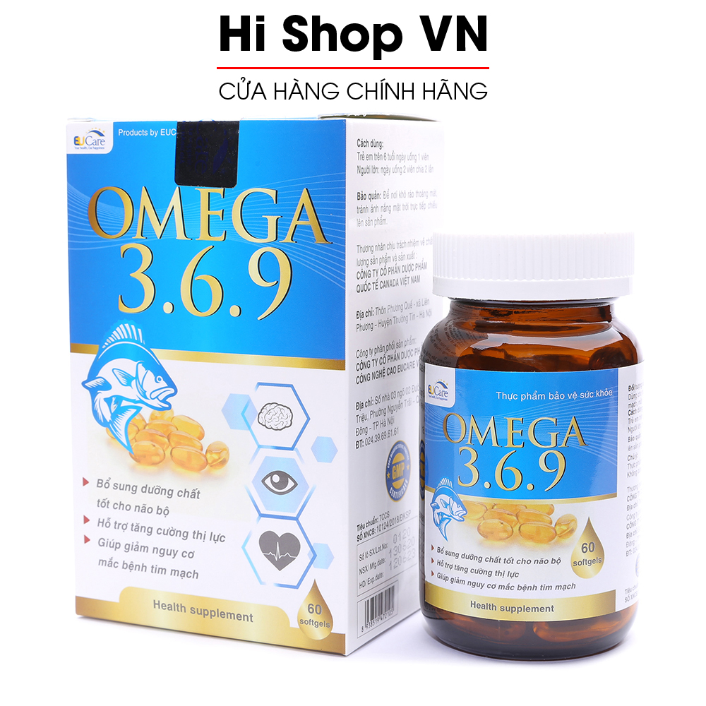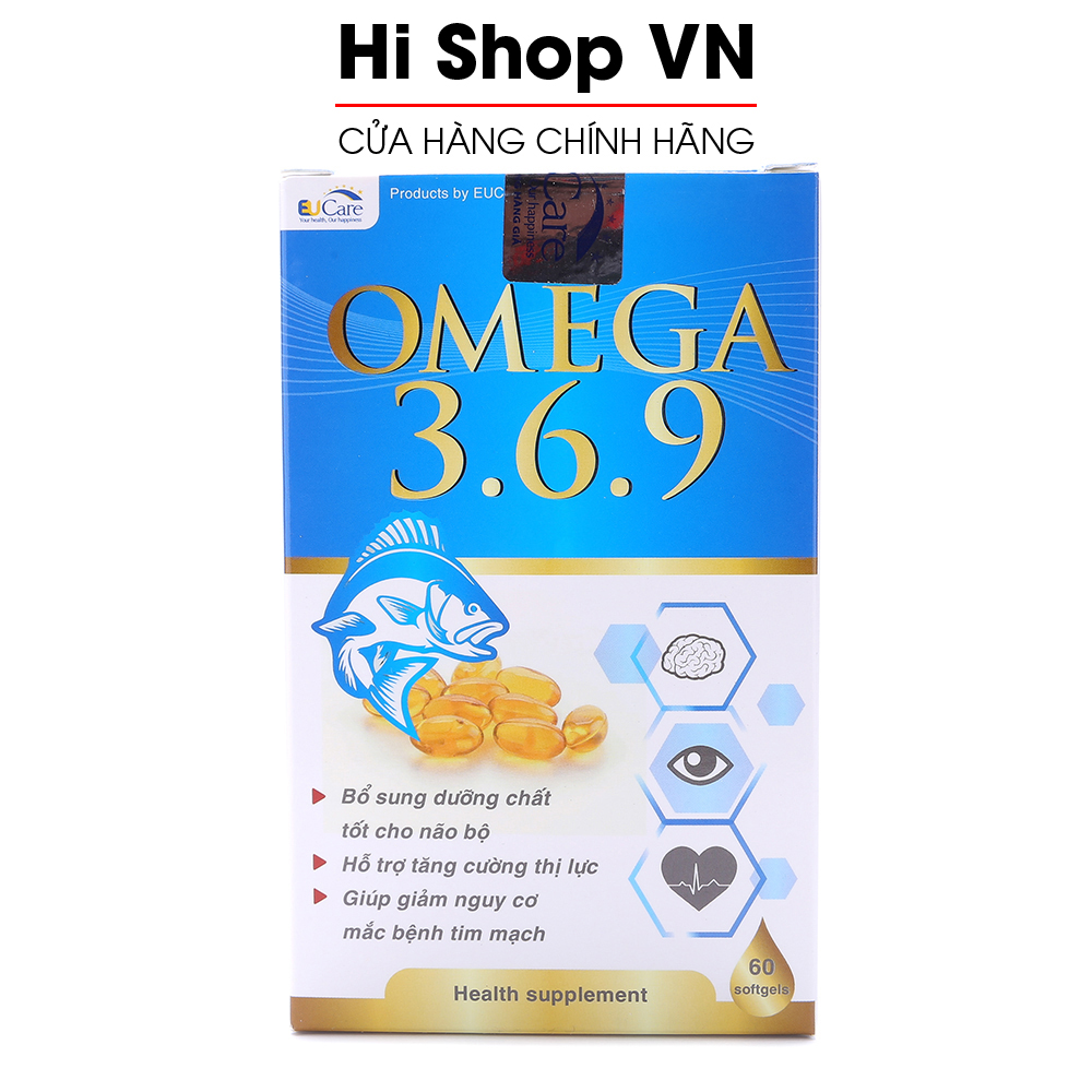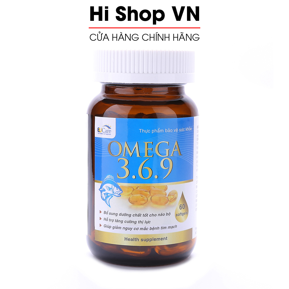 Viên dầu cá Omega 369 EUCARE bổ não, sáng mắt, khỏe tim mạch - Hộp 60 viên chuẩn GMP Bộ Y Tế