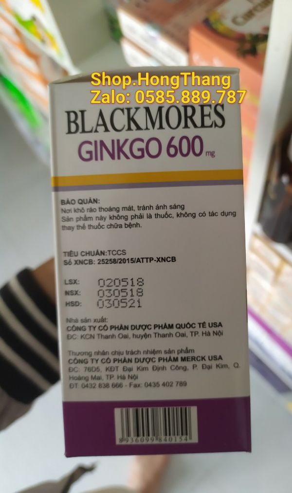 Thành phần:Ginkgo biloba...............600mg