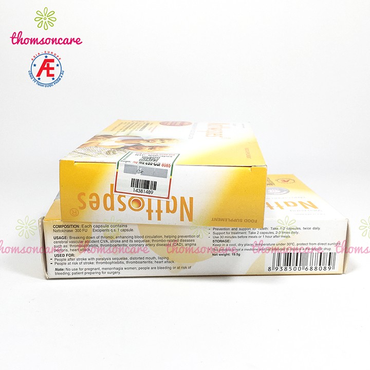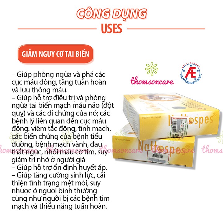 Nattospes tăng sức khỏe tuần hoàn não hộp 30 viên giảm tai biến mạch máu não tái phát cải thiện di chứng sau tai biến phá máu đông tăng tuần hoàn máu não ở người già mệt mỏi suy nhược cải thiện trí nhớ giảm thiểu máu não cục bộ người cao tuổi
