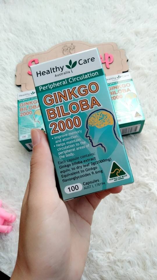 Công dụng– Giúp đầu óc minh mẫn, tỉnh táo hơn.– Cải thiện trí nhớ tốt.-bổ não Ginkgo Biloba của Úc giúp cải thiện sự nhận thức và tinh thần được minh mẫn hơn.– Tuần hoàn lưu thông máu trong não bộ được triệt tiêu sự ứ động, tắc nghẽn các mạch máu não gây nguy cơ giảm trí nhớ ở người già, người mắc bệnh Alzerma.– Giúp giảm stress cho công việc hàng ngày và những lo âu phiền toái trong cuộc sống của bạn.– Ginkgo Biloba Healthy Care làm giảm các cơn đau liên quan đến tiền đình, chóng mặt, rối loạn cảm xúc, đau đầu không rõ nguyên nhân do đâu.