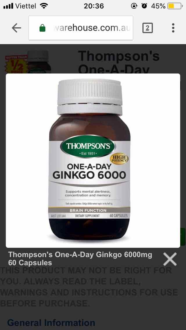 🎊🎊🎊Viên uống bổ não tăng cường trí nhớ Thompsons One-A-Day Ginko 6000🎊🎊🎊🔥 Đặc biệt tốt có người sau tai b 500.000đ