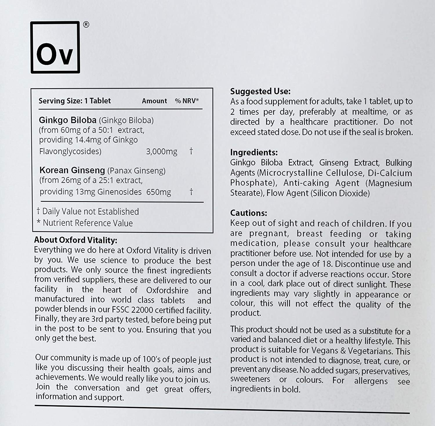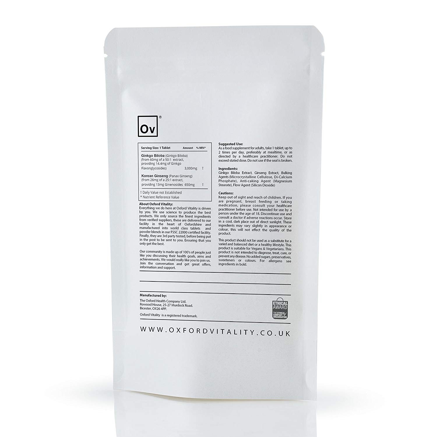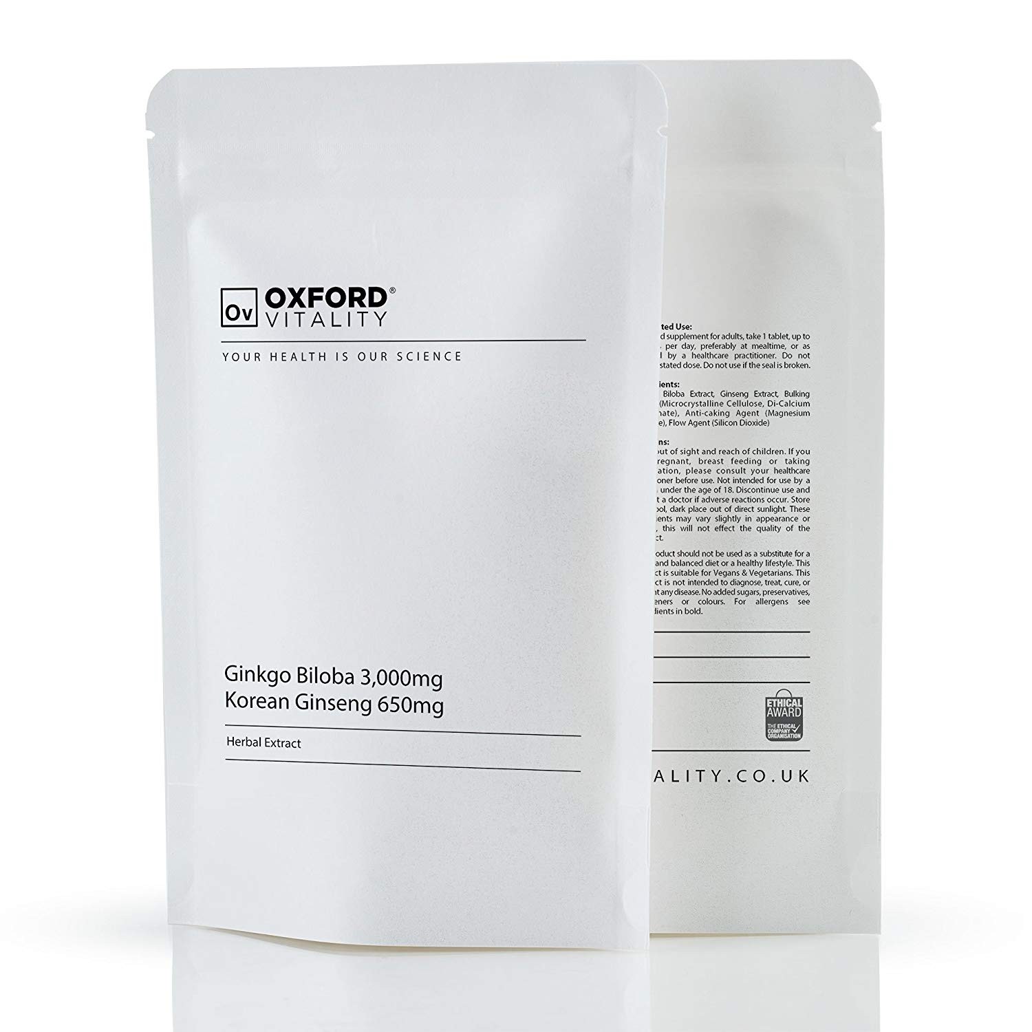 Viên uống tăng cường tuần hoàn não và sinh lực nhân sâm Ov OXFORD VITALITY 3000 mg Ginkgo Biloba and Ginseng 120 viên