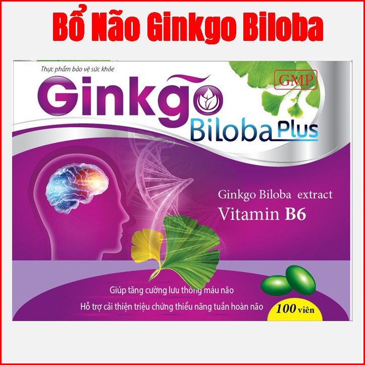 [Hộp 100 Viên] Viên Uống Bổ Não Ginkgo Biloga Plus giúp bổ não, tăng cường tuần hoàn não, lưu thông mạch máu não,giảm đau đầu, hoa mắt, chóng mặt, mất ngủ- hộp trắng tím