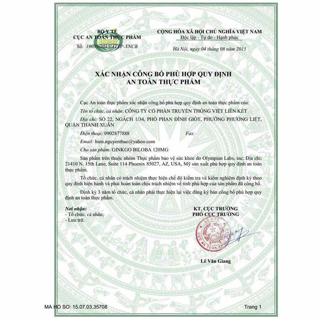 Ginkgo Biloba 120mg Trunature Của Mỹ 300 ViênGinkgo Biloba 120mg với thành phần chính được chiết xuất từ cây bạch quả, giú