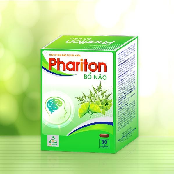 - Thực phẩm bảo vệ sức khỏe Phariton Bổ Não hỗ trợ tăng cường lưu thông máu, hỗ trợ làm giảm các triệu chứng: suy giảm trí nhớ, đau đầu, chóng mặt, mất ngủ do thiểu năng tuần hoàn não.
