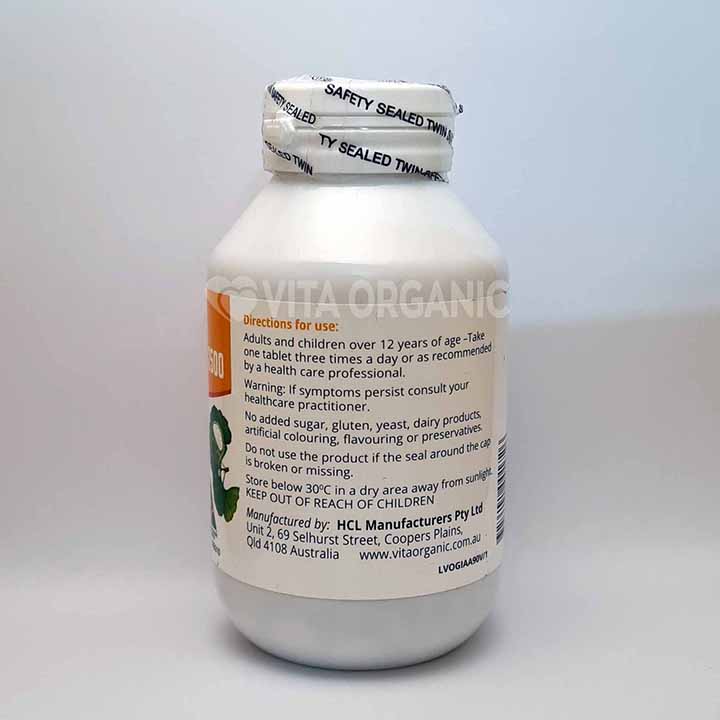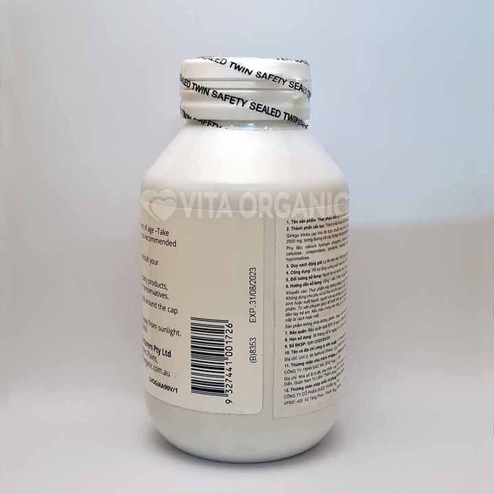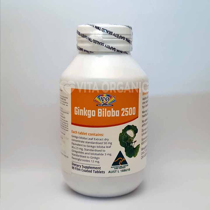 Tăng cường tuần hoàn não, hỗ trợ cải thiện trí nhớ và khả năng tập trung Vita Organic Ginkgo Biloba 2500 mg [Hộp 90 viên]