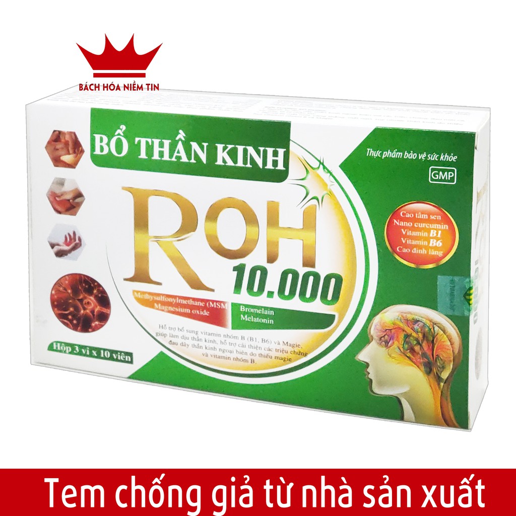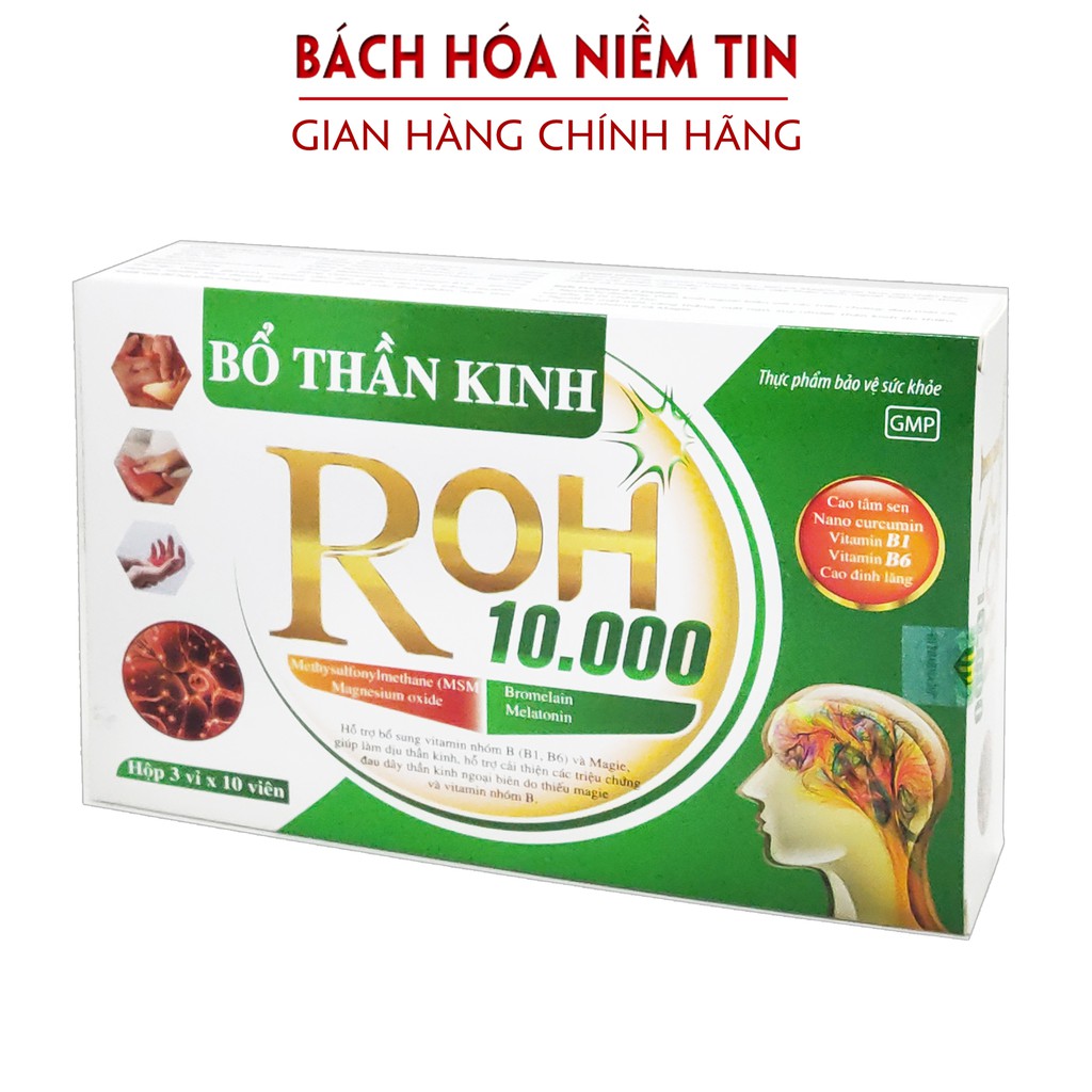 Viên uống Bổ Thần Kinh ROH 10.000 giảm đau vai gáy,đau dây thần kinh ngoại biên, tê bì chân tay - Hộp 30 viên chuẩn GMP