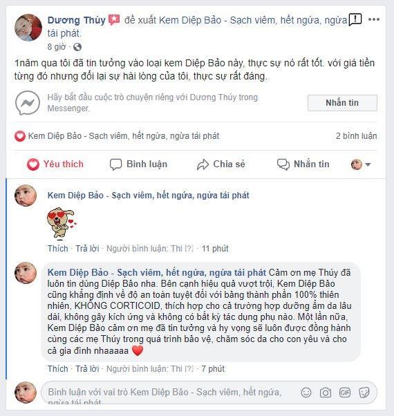 100% khách hàng hài lòng về sản phẩm. Nếu bạn kg hài lòng, con bạn kg hết viêm ngứa, chúng tôi cam kết hoàn tiền 200% luôn nhé.Khi da bé nổi mẫn thì cha mẹ nào nhìn con cũng xót, dùng nhiều loại kg khỏi chắc chắn sẽ rất lo lắng, nhưng nếu mẹ đã tìm đến Diệp bảo rồi thì xin nhắn với mẹ là mẹ hãy vui lên nha, vì con yêu sẽ đỡ hẳn sau vài ngày và mất hẳn sau tuần sử dung nha, 100% là hết ạ.