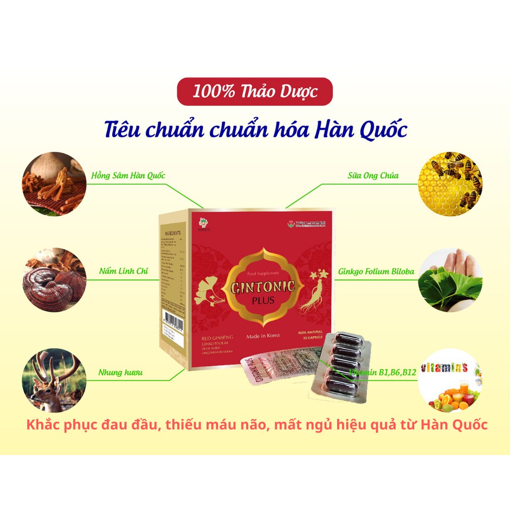 Bổ não GINTONIC PLUS HÀN QUỐC - DƯỠNG NÃO, hết đau đầu, chống mệt mỏi