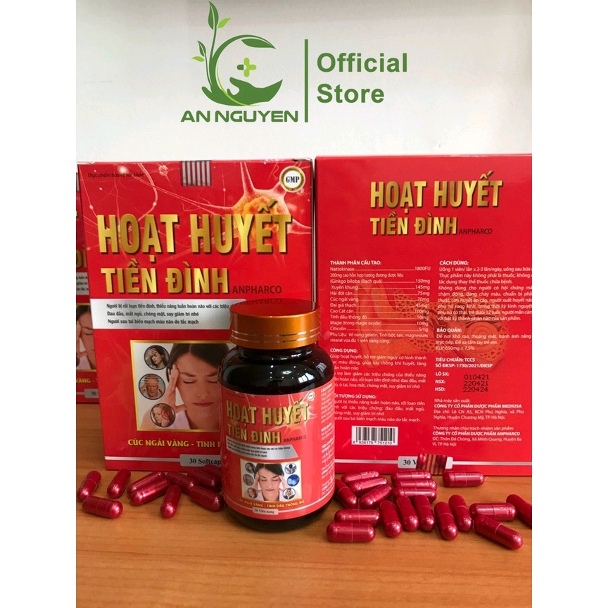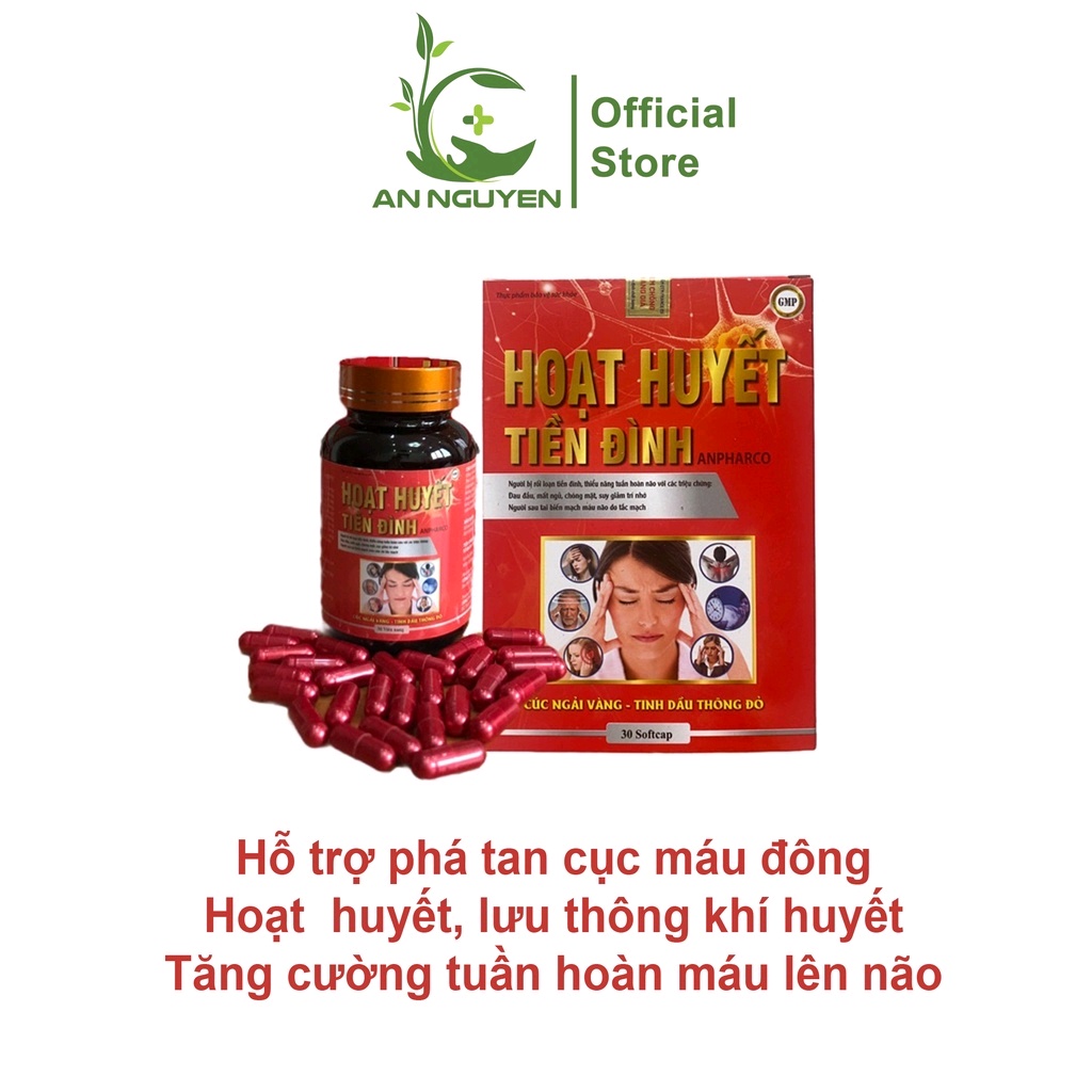 + Công dụng HOẠT HUYẾT TIỀN ĐÌNH Hỗ trợ phá tan cục máu đông, hoạt huyết, lưu thông khí huyết. Tăng cường tuần hoàn máu lên não, hỗ trợ giảm triệu chứng thiểu năng tuần hoàn não, rối loạn tiền đình: đau đầu, đau nửa đầu, hoa mắt, chóng mặt, ù tai, buồn nôn, đau mỏi vai gáy, choáng váng, mất thăng bằng khi thay đổi tư thế. Bổ huyết, hoạt huyết, ổn định huyết áp, giúp ngủ ngon. Hỗ trợ phòng say tàu xe, khắc phục di chứng sau tai biến mạch máu não. Hỗ trợ phòng ngừa cao mỡ máu, xơ vữa động mạch, phòng tai biến mạch máu não, nhồi máu cơ tim.