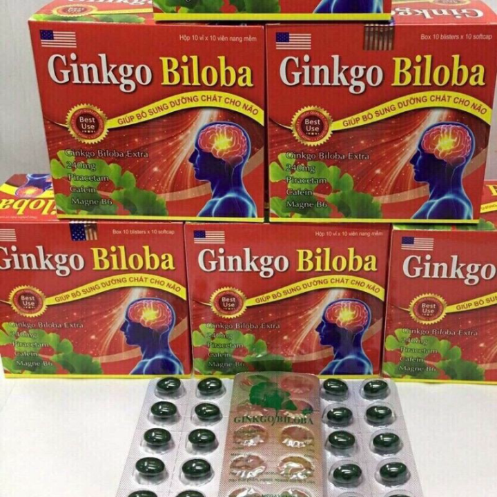 Ginkgo biloba 240 mgGiúp bổ sung dưỡng chất cho nãoCÔNG DỤNG.- Hỗ trợ hỗ trợ làm giảm thiểu năng tuần hoàn não, tăng cường lưu thông huyết mạch giúp cải thiện rối loạn tiền đình, chóng mặt, ù tai.- Giúp tăng cường trí nhớ, giúp trí não minh mẫn, nhanh nhẹn, cải thiện triệu chứng liên quan đến thiểu năng tuần hoàn não: hoa mắt, chóng mặt, ù tai, mất ngủ, tê bì tay chân, suy nhược thần kinh.- Bảo vệ và tăng cường hoạt động của não.ĐỐI TƯỢNG SỬ DỤNG.- Người bị rối loạn tiền đình, thiểu năng tuần hoàn não gây suy giảm trí nhớ, rối loạn tuần hoàn não, đau đầu hoa mắt, chóng mặt, mất ngủ, mất thăng bằng, suy ngược thần kinh, người làm việc trí óc căng thẳng, mệt mỏi.- Người khí huyết ứ trệ, lưu thông kém,, lượng máu đến vùng vai gáy, cổ suy giảm gây đau mỏi vai gáy, tê đau cứng cổ.- Người đau mỏi cơ bắp, tê bì chân tay do thiếu máu, giảm tuần hoàn ở các chi gây chuột rút chân tay.CÁCH DÙNG.- Uống trước ăn 30 phút để có hiệu quả nhất.- Người lớn và trẻ em trên 6 tuổi: 1 viên/lần x 3 lần/ngày.
