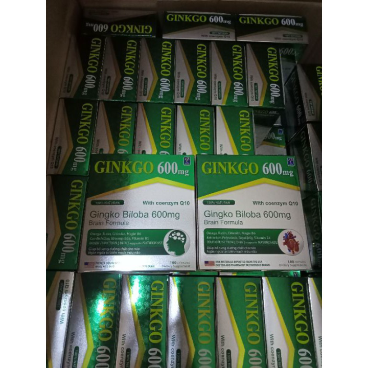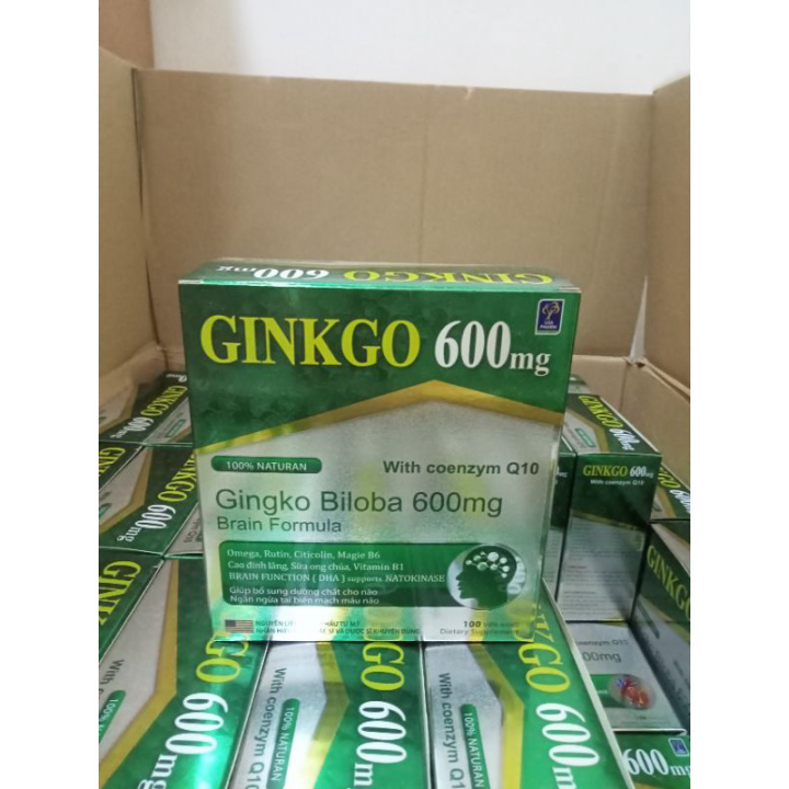 Ginkgo 600mg with coenzym Q10 viên uống hoạt huyết dưỡng não Tăng cường lưu thông máu tới các bộ phận cơ thể, giúp làm khỏ