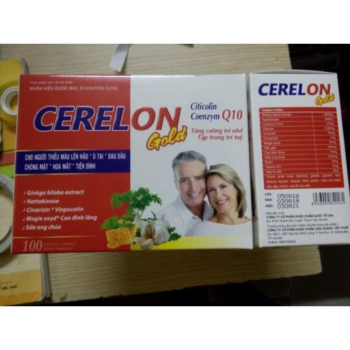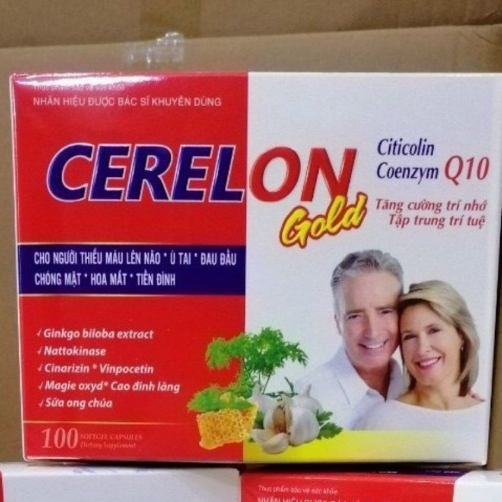 Cerelon gold Giúp bổ sung dưỡng chất cho não hiệu quả viên uống hoạt huyết dưỡng, giảm đau đầu, chóng mặt não 100 viên