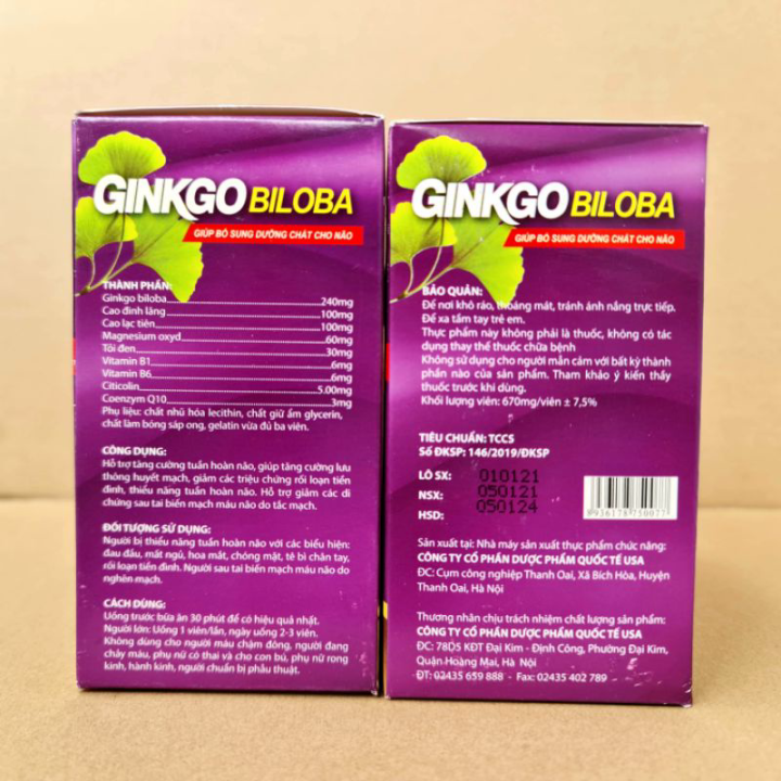 Viên uống Ginkgo Biloba 240mg Bổ não, tăng cường tuần hoàn máu hiệu quả hộp 100 viên