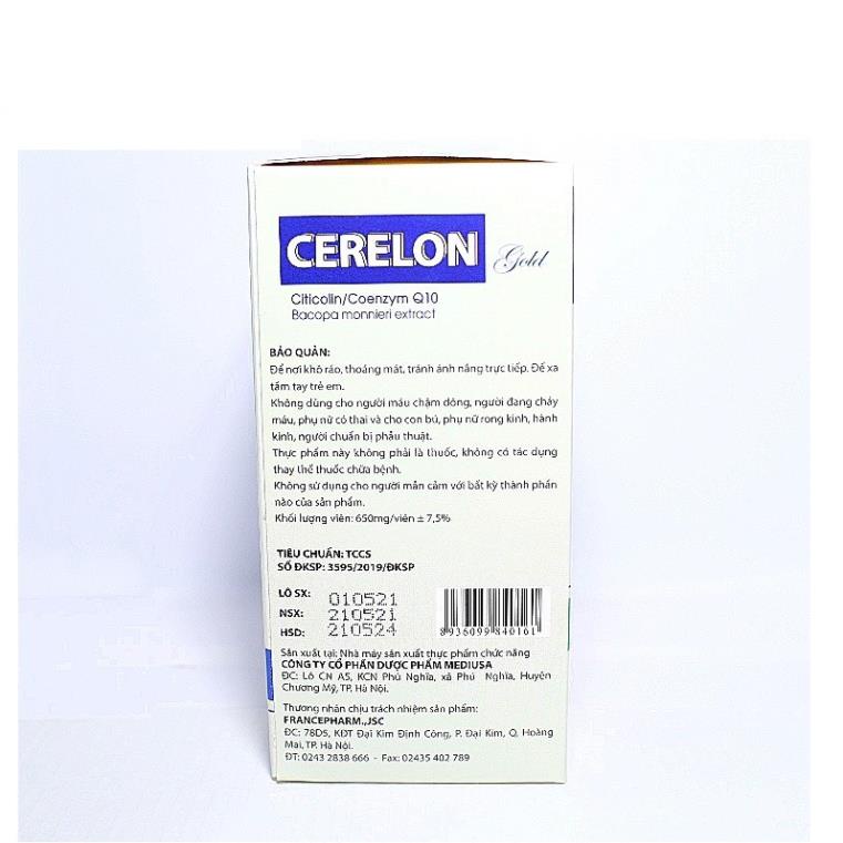 Bổ Não CERELON GOLD Hộp 100 Viên - Hoạt huyết dưỡng não, Ngăn ngừa tai biến, Giảm triệu chứng tiền đình