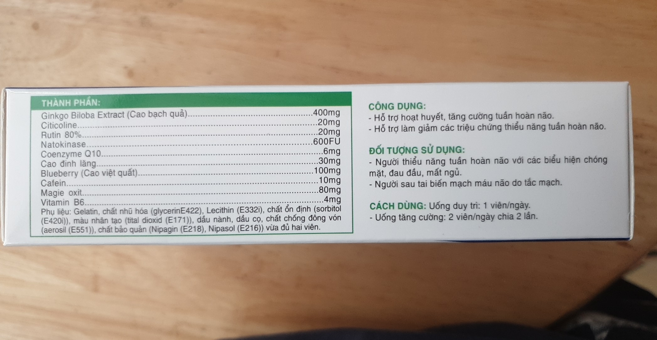 - Hoạt huyết dưỡng não, tăng tuần hoàn máu não.- Giảm các biểu hiện do thiểu năng tuần hoàn não.- Giảm đau đầu, hoa mắt, chóng mặt, mất ngủ, mau quên.- Giảm triệu chứng suy nhược thần kinh, rối loạn tiền đình.- Công thức thảo dược thiên nhiên mang đến kết quả nhanh chóng, an toàn khi sử dụng lâu dài.