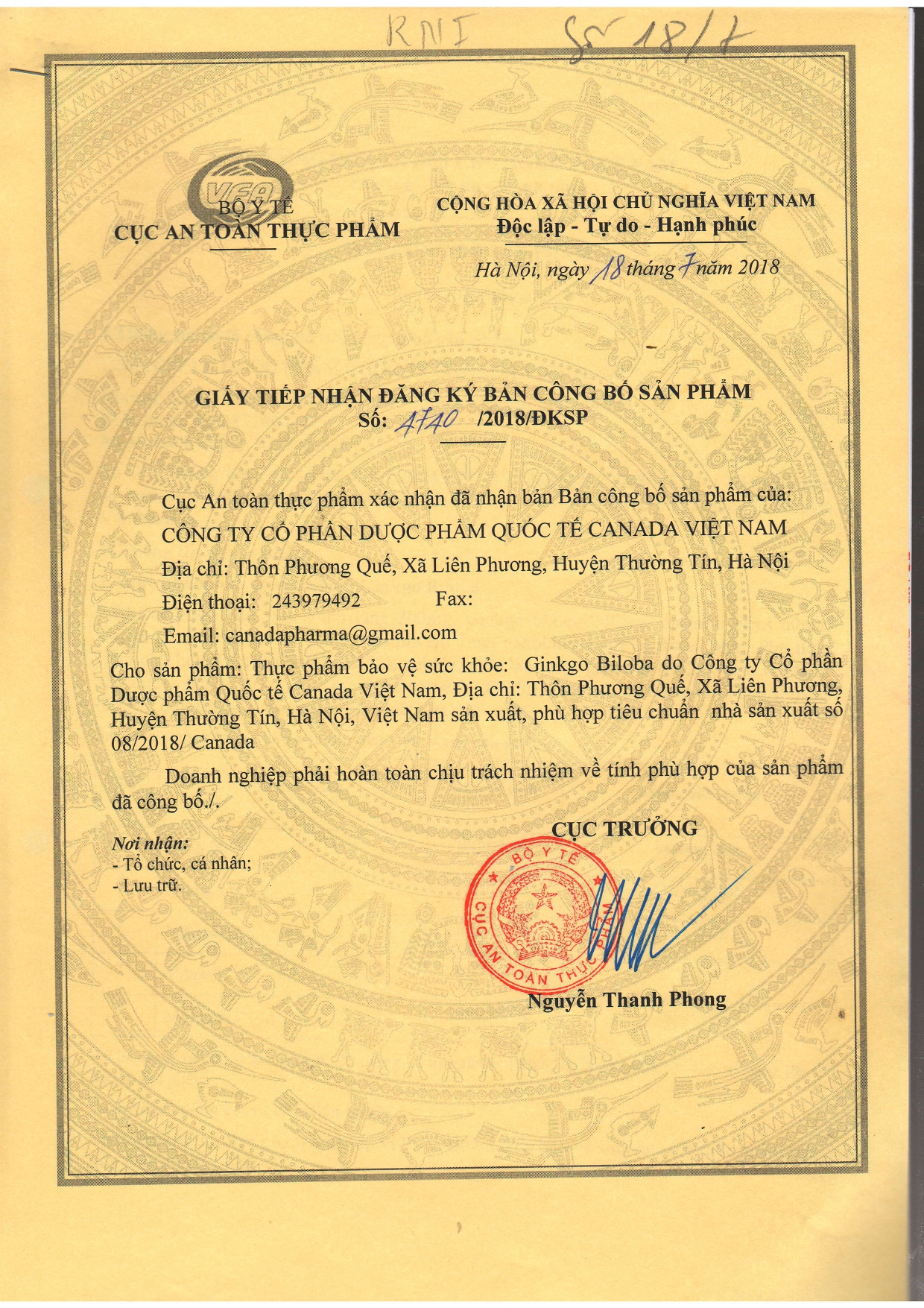 1. Thông tin về sản phẩm: GINKGO BILOBA .