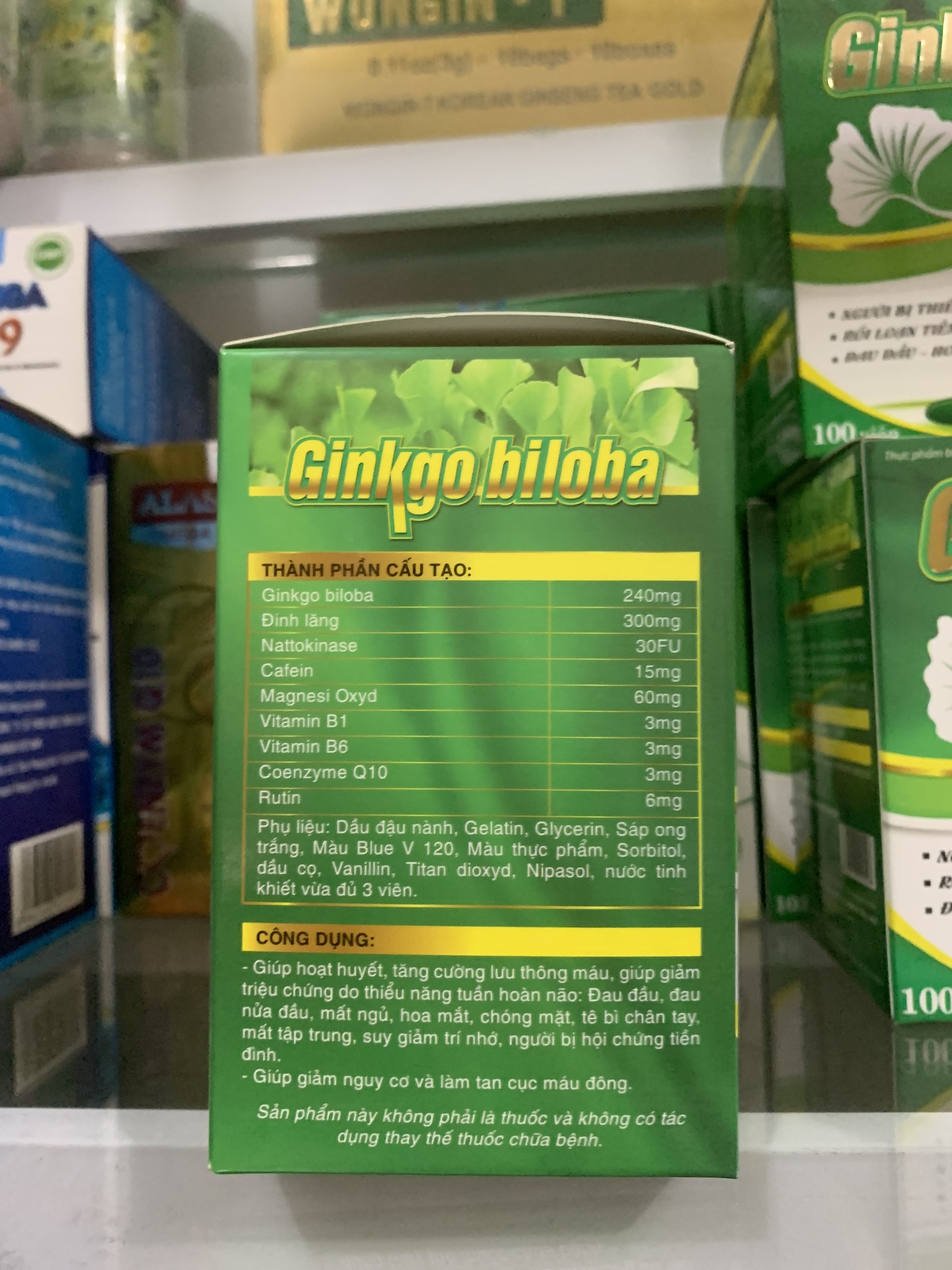 2. Thành phần cấu tạo: Đinh lăng 300mg, Ginkgo Biloba 240mg, Magnesium Oxide 60mg, Cafein 1