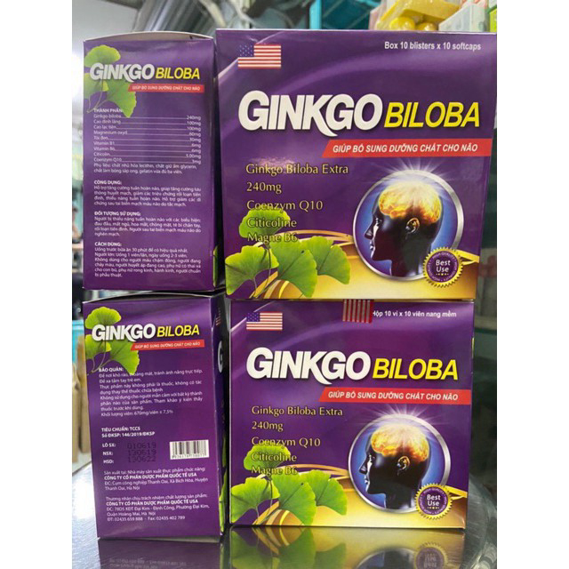 (Chính Hãng) Ginkgo biloba 240mg bổ não tăng cường tuần hoàn máu hiệu quả hộp 100 viên, sản phẩm chất lượng, đảm bảo an toàn sức khỏe người sử dụng, cam kết hàng giống hình
