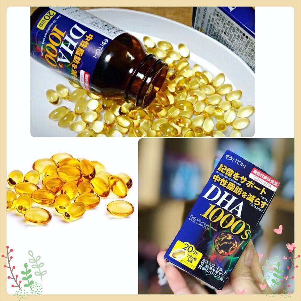 Công dụng- Viên uống Itoh DHA 1000mg giúp hỗ trợ tăng cường máu lên não, từ đó vận chuyển các chất nuôi dưỡng não bộ khoẻ mạnh, tinh thần tỉnh táo.- Giúp bổ sung các chất thiết yếu nuôi dưỡng tế bào não khỏe mạnh và hỗ trợ duy trì hoạt động bình thường của não bộ.- Hỗ trợ tăng cường khả năng tập trung và ghi nhớ, giúp làm việc, học tập hiệu quả hơn.- Xoa dịu thần kinh, giúp tinh thần thư thái, hỗ trợ giúp giấc ngủ sâu và ngon hơn.- Giảm thiểu nguy cơ mắc các bệnh như rối loạn tiền đình, chứng hay quên ở người lớn tuổi.- Hỗ trợ bảo vệ sức khỏe tim mạch, ổn định huyết áp, đồng thời giảm thiểu nguy cơ mắc các bệnh như nhồi máu cơ tim, xơ vữa động mạch...- Bổ sung dưỡng chất cần thiết để giúp đôi mắt sáng khỏe.