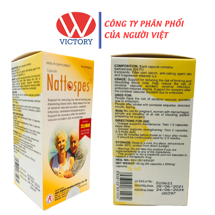 Nattospes Hộp 90 Viên - Hỗ Trợ Tăng Tuần Hoàn Máu Não - Victory