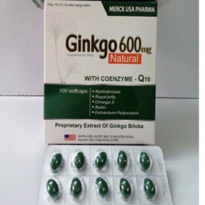 Ginkgo 600 viên uống hoạt huyết dưỡng não hộp 100 viên Giảm các triệu chứng các không thiểu năng tuần hoàn não như: mệt mỏi, đau đầu, chóng mặt, hoa mắt