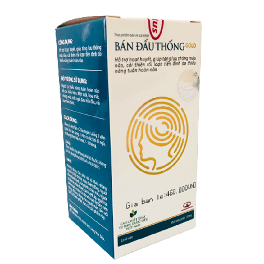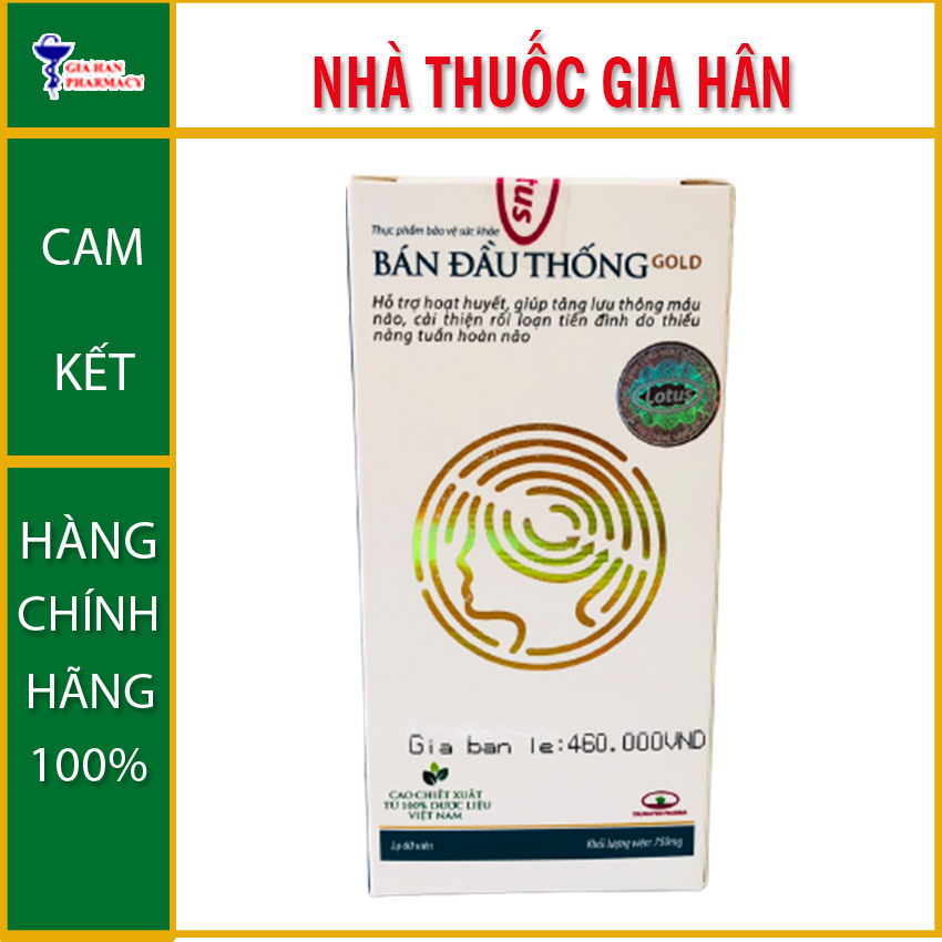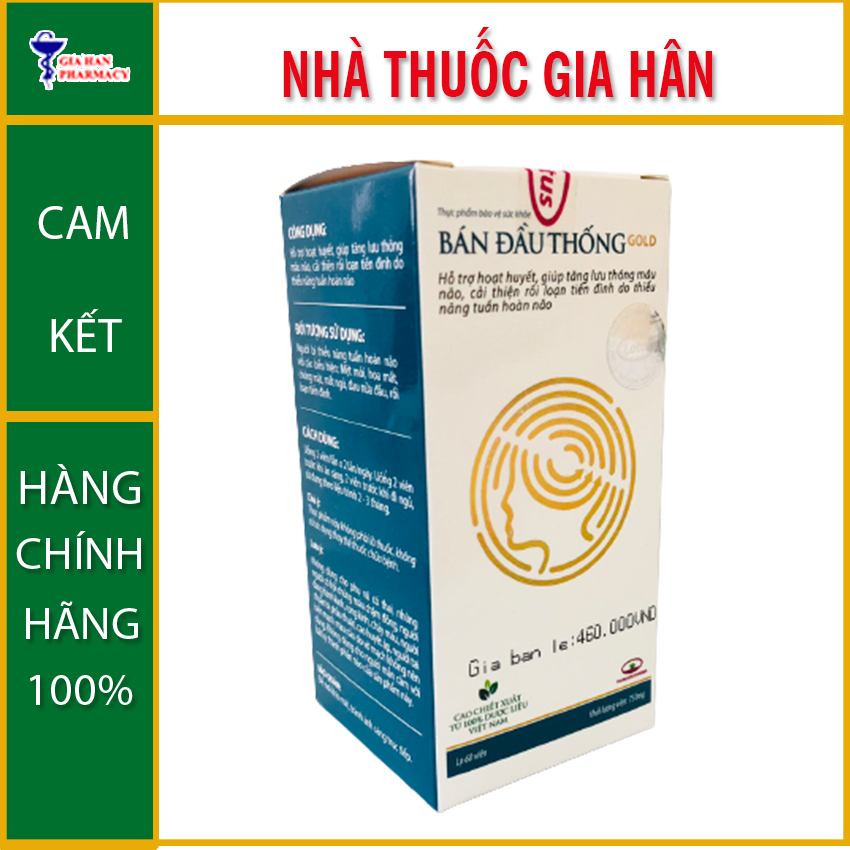 Bán Đầu Thống Gold Hộp 60 Viên - Giảm Thiểu Năng Tuần Hoàn Máu Não & Tăng Cường Lưu Thông Máu - Gia Hân