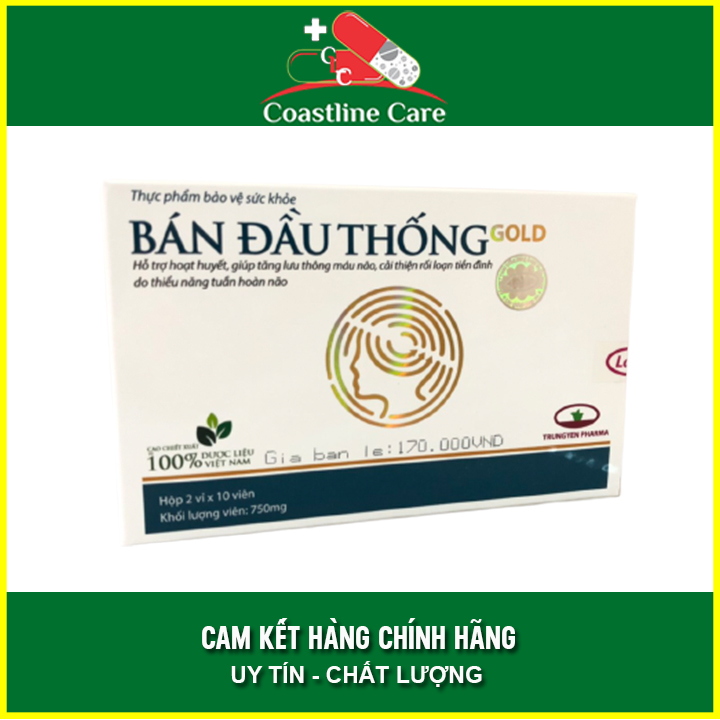 Viên Uống Bán Đầu Thống Gold Hộp 20 Viên - Giúp Tăng Lưu Thông Mấu Não - Coastlinecare Pharmacy
