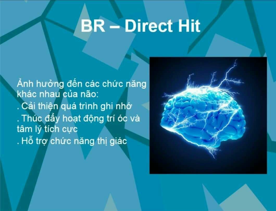 ★ CÔNG DỤNG SẢN PHẨM:Sản phẩm BR Direct Hit thuộc Project V có những tính năng tác dụng chính sau:- Kích thích và cải thiện hoạt động trí não.- Cải thiện trí nhớ và nâng cao khả năng tập trung của trí tuệ.- Ảnh hưởng tích cực đến hoạt động của hệ thần kinh trung ương.- Giúp phục hồi tế bào não.- Tăng cường tuần hoàn máu, làm chậm quá trình lão hoá não, giúp ngăn ngừa suy giảm trí nhớ do tuổi tác và giữ sự minh mẫn.- Điều hoà huyết áp, loại bỏ đau đầu, chóng mặt, và hiện tượng ù tai.- Có các tính năng chống loãng xương.- Tăng số lượng tế bào não làm việc hiệu quả, đưa cả các tế bào “ngủ” vào hoạt động
