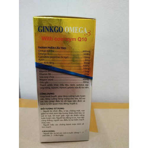 (chính hãng) HOẠT HUYẾT DƯỠNG NÃO GINKGO OMEGA3 - NGUYÊN LIỆU NHẬP KHẨU MỸ - TĂNG CƯỜNG TRÍ NHỚ - TẬP TRUNG TRÍ TUỆ - NGĂN NGỪA TAI BIẾN MẠCH MÁU NÃO - HỘP 100 VIÊN