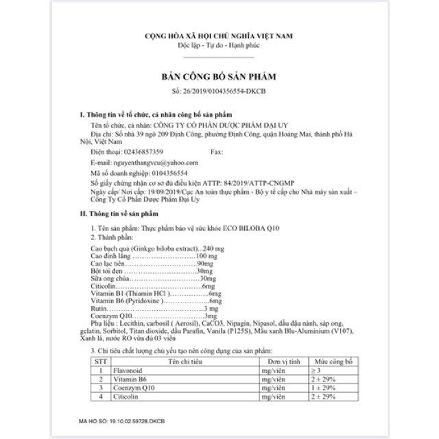 Eco biloba Q10 Viên uống bổ não HOẠT HUYẾT DƯỠNG NÃO (Ginkgo Biloba 240)
