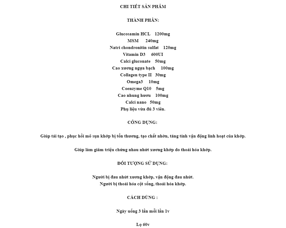 Flex Amin Giúp phục hồi, tái tạo mô sụn khớp, tăng tiết dịch lọ 60 viên sản phẩm chất lượng, đảm bảo an toàn sức khỏe người sử dụng, cam kết hàng giống hình