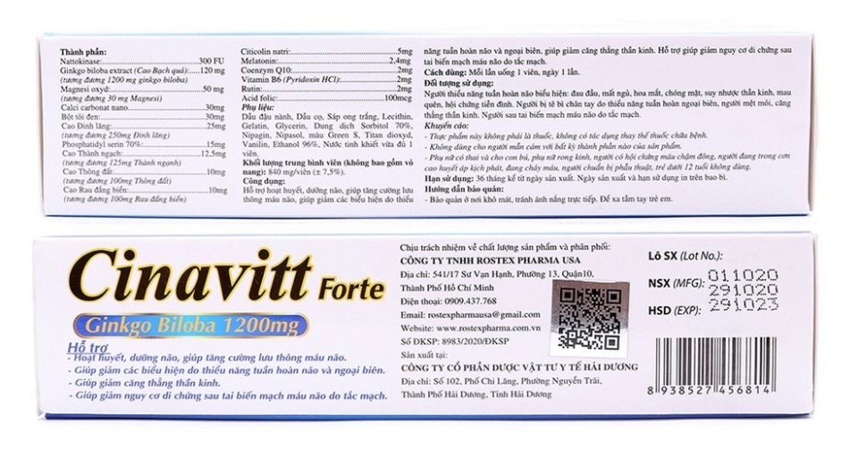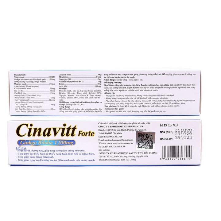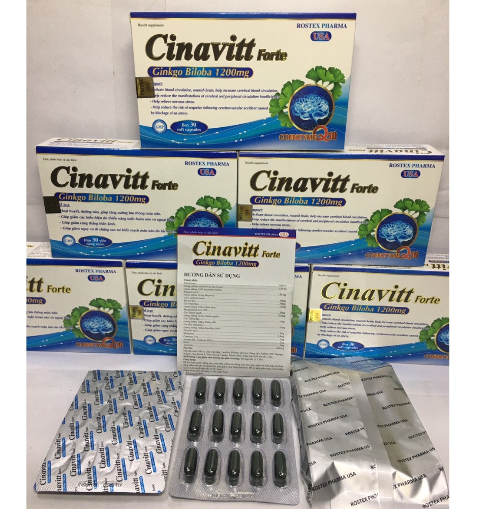 Hoạt huyết dưỡng não Cinavitt Fort Ginkgo Biloba 1200mg giảm đau đầu, hoa mắt, chóng mặt, rối loạn tiền đình hộp 30 viên Sản phẩm có nguồn gốc xuất xứ rõ ràng. Dễ dàng sử dụng Cam kết sản phẩm y như hình