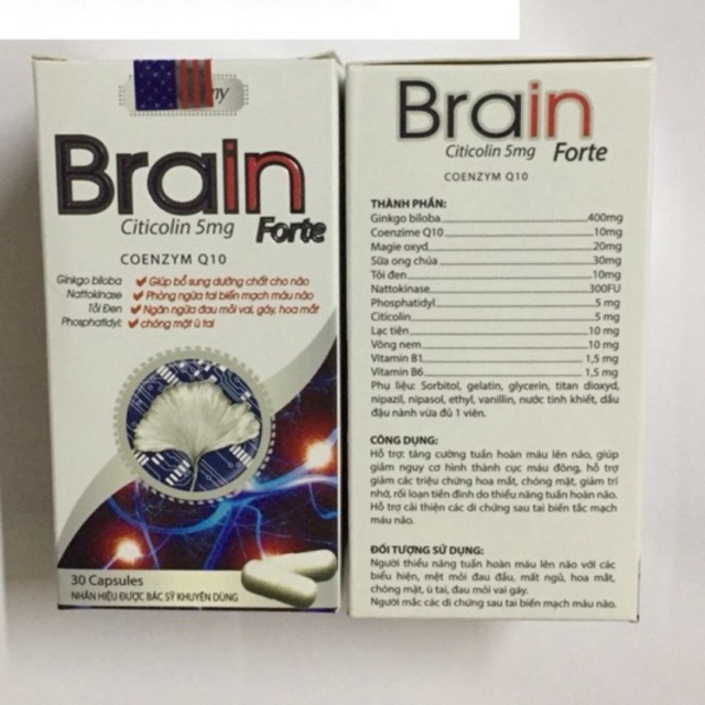 Brain Fort Giúp bổ sung dưỡng chất cho não, phòng ngừa tai biến, chóng mặt ù tai Lọ 30 viên