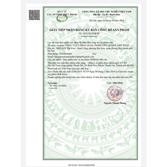 Ginkgo 600 giúp hoạt huyết dưỡng não bền thành mạch hộp 100 viên, sản phẩm có nguồn gốc xuất xứ rõ ràng, đảm bảo chất lượng