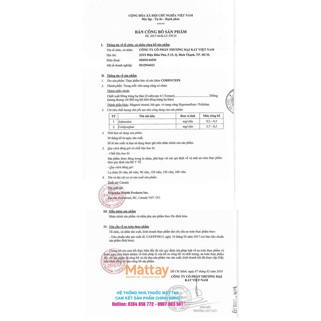 Cordyceps - Organika - Chai 90 Viên - Tăng Cường Sức Khỏe